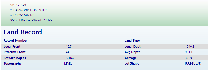 Exciting land opportunity at 9515 Cedarwood Dr. in North Royalton, OH 44133! This expansive property spans 3.674 acres and holds incredible potential for a lucrative development deal. With the ability to subdivide the lot into 5-6 parcels, this presents a golden opportunity for the creation of single-family homes. The profitable prospects make this a must-acquire property for those looking to capitalize on the growing real estate market. Act swiftly to secure this promising investment and unlock the potential for a thriving residential development. Don't miss out on this rare chance to shape the future of 9515 Cedarwood Dr. (Buyers to Verify Details)